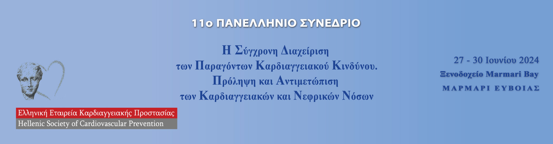 Εκ μέρους του Διοικητικού Συμβουλίου της Ελληνικής Εταιρείας Καρδιαγγειακής Προστα- σίας (ΕΕΚΠ) έχω την τιμή και τη χαρά να σας προσκαλέσω στο 11ο Πανελλήνιο Συνέδριο μας, στο όμορφο Μαρμάρι Ευβοίας, με κύριο θέμα: «Η σύγχρονη διαχείριση των πα- ραγόντων καρδιαγγειακού κινδύνου. Πρόληψη και αντιμετώπιση των καρδιαγγει- ακών και νεφρικών νόσων».