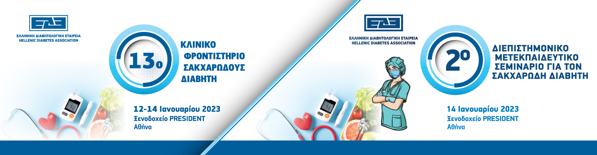 Η Ελληνική Διαβητολογική Εταιρεία (ΕΔΕ), από το 1975, προάγει τη συνεχή επιμόρφωση και δια βίου εκπαίδευση και συμβάλλει σημαντικά στην ενημέρωση και εκπαίδευση των Ελλήνων ιατρών, παραμένοντας ο συνδετικός κρίκος όλων των λειτουργών υγείας που έχουν ενδιαφέρον για το Σακχαρώδη Διαβήτη. Συνεχίζοντας την παράδοση των τελευταίων ετών, διοργανώνει φέτος το 13ο Κλινικό Φροντιστήριο ΣΑΚΧΑΡΩΔΟΥΣ ΔΙΑΒΗΤΗ, το οποίο θα διεξαχθεί υβριδικά (φυσική παρουσία & διαδικτυακά), σύμφωνα με τα υγειονομικά μέτρα που θα ισχύουν, στα πλαίσια της υγειονομικής κρίσης COVID-19.