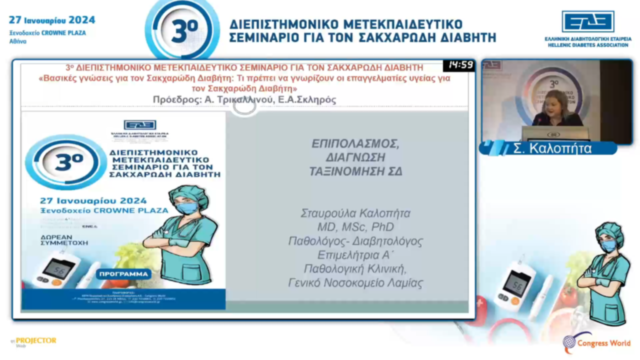 10:00-11:00 | 3ο Διεπιστημονικό | «Βασικές γνώσεις για τον Σακχαρώδη Διαβήτη: Τι πρέπει να γνωρίζουν οι επαγγελματίες υγείας Για τις Επιπλοκές & Συννοσηρότητες»