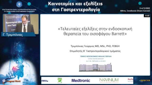 Τελευταίες εξελίξεις στην ενδοσκοπική θεραπεία του οισ. Barrett | Γ. Τριμπόνιας