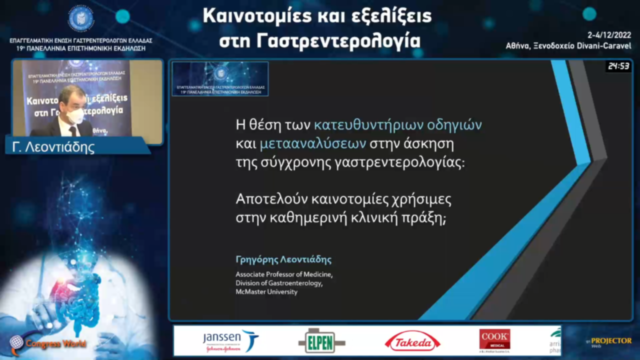 «Guidelines – metanalyses and practicing Gastroenterology» - «Η θέση των οδηγιών (guidelines) / μεταναλύσεων στην άσκηση της σύγχρονης Γαστρεντερολογίας: αποτελούν καινοτομίες χρήσιμες στην καθημερινή κλινική πράξη;» | Γ. Λεοντιάδης