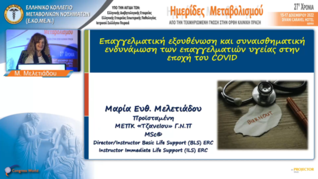 Επαγγελματική εξουθένωση (professional burnout) και συναισθηματική ενδυνάμωση των επαγγελματιών υγείας στην εποχή του COVID. | Μ. Μελετιάδου