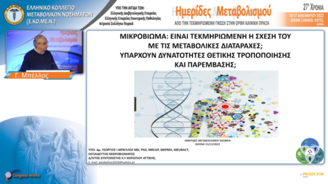 Μικροβίωμα: Είναι τεκμηριωμένη η σχέση του με τις μεταβολικές διαταραχές; Υπάρχουν δυνατότητες θετικής τροποποίησης και παρέμβασης; | Γ. Μπέλλος
