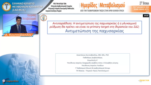 Αντιπαράθεση: Η αντιμετώπιση της παχυσαρκίας ή η γλυκαιμική ρύθμιση θα πρέπει να είναι το primary target στη θεραπεία του ΣΔ2; :΅Αντιμετώπιση της παχυσαρκίας | Α. Κουτσοβασίλης