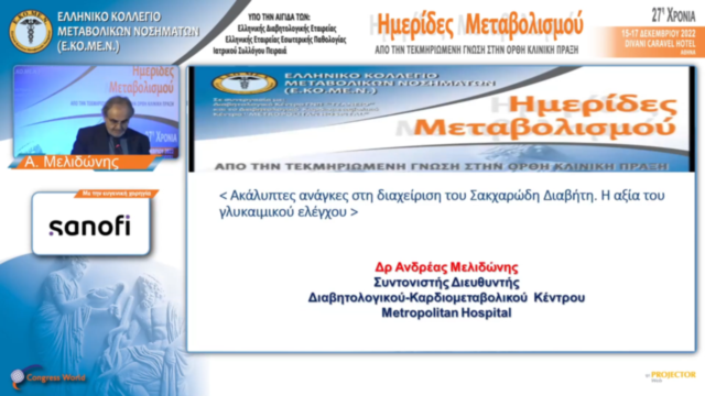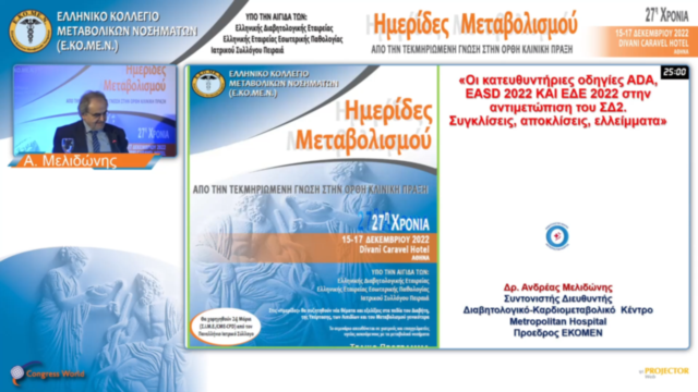 Οι κατευθυντήριες οδηγίες ΑDA, EASD 2022 ΚΑΙ ΕΔΕ 2022 στην αντιμετώπιση του ΣΔ2. Συγκλίσεις, αποκλίσεις, ελλείμματα | Α. Μελιδώνης