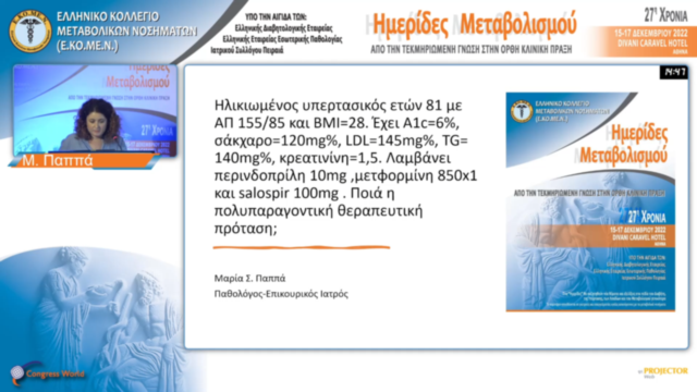 Ασθενής με ΣΔτ2 ετών 62, έχει από 10ετίας ΣΔ. Τriplex καρδιάς: διαστολική δυσλειτουργία αριστερής κοιλίας. Ποια η αντιμετώπιση; | Α. Γανωτοπούλου