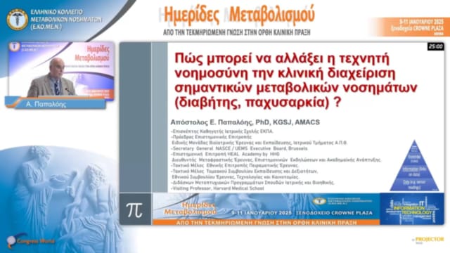 Πώς μπορεί να αλλάξει η τεχνητή νοημοσύνη την κλινική διαχείριση σημαντικών μεταβολικών νοσημάτων (διαβήτης, παχυσαρκία); | Α. Παπαλόης