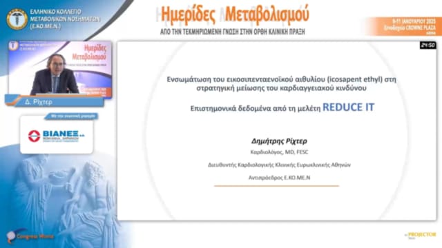 Νέα δεδομένα για την αντιμετώπιση του Υπολειπόμενου Καρδιαγγειακού Κινδύνου - Αλλάζοντας την πορεία των καρδιαγγειακών εκβάσεων με το εικοσιπενταενοϊκό αιθύλιο (IPE) | Δ. Ρίχτερ