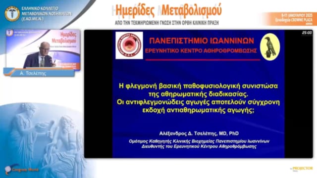 Η φλεγμονή βασική Παθοφυσιολογική συνιστώσα της αθηρωματικής διαδικασίας. Οι αντιφλεγμονώδεις αγωγές αποτελούν σύγχρονη εκδοχή αντιαθηρωματικής αγωγής; | Α. Τσελέπης