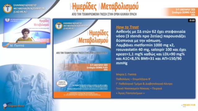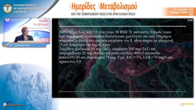Ασθενής με ΣΔ2 από 15 ετίας ετών 58. Λαμβάνει gliclaride 60 mg (1x1), sitagliptin 100 mg (1x1) και empagliflozin 25 mg. Καθώς και pentoxifylline 400x3 ezetimibe-rosuva20mg.10/20 και clopidogrel 75 mg. | Α. Τρικκαλινού