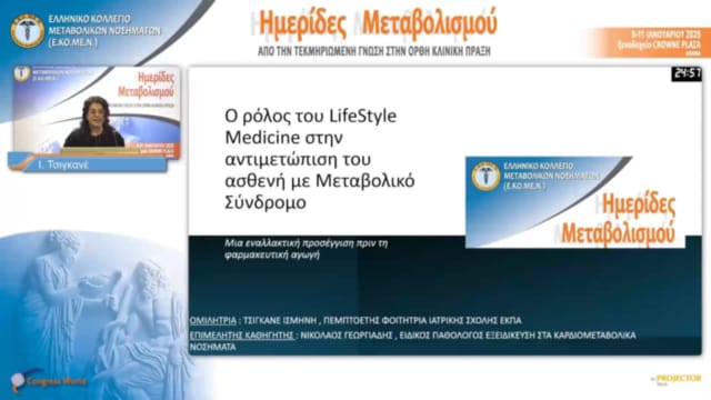 Ο ρόλος του Lifestyle Medicine στην αντιμετώπιση του ασθενή με ΜΣ, πριν τη θεραπευτική φαρμακευτική αγωγή | Ι. Τσιγκανέ