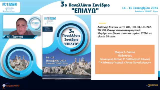 Ασθενής 23 ετών με TC 286, HDL 31, LDL 286, TG 168. Οικογενειακό αναμνηστικό: Μητέρα απεβίωσε από εκτεταμένο STEMI σε ηλικία 58 ετών | Μ. Παππά