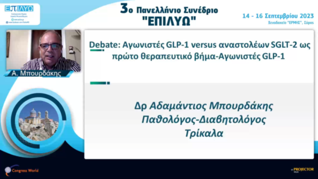 19.15 - 20.00 Debate: Αγωνιστές GLP-1 versus αναστολέων SGLT-2 ως πρώτο θεραπευτικό βήμα