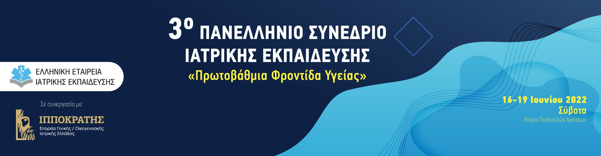 Με ιδιαίτερη χαρά σας καλωσορίζω στο 3ο Πανελλήνιο Συνέδριο Ιατρικής Εκπαίδευσης που διοργανώνει η Ελληνική Εταιρεία Ιατρικής Εκπαίδευσης με τίτλο «Πρωτοβάθμια Φροντίδα Υγείας», σε συνεργασία με την Εταιρεία Γενικής / Οικογενειακής Ιατρικής Ελλάδος «ΙΠΠΟΚΡΑΤΗΣ».