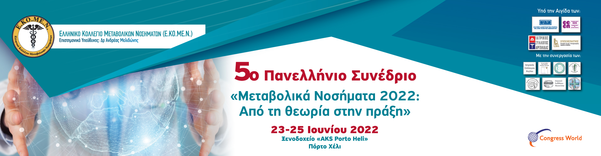Το Ελληνικό Κολλέγιο Μεταβολικών Νοσημάτων (Ε.ΚΟ.ΜΕ.Ν.) μετά από μια 10ετία έντονης παρουσίας στα εκπαιδευτικά και επιστημονικά δρώμενα και αφού οργάνωσε και πραγματοποίησε περισσότερες από είκοσι εκπαιδευτικές Διημερίδες και Τριημερίδες σε όλη την Ελλάδα, εξαγγέλλει και οριοθετεί το 5ο Πανελλήνιο Συνέδριο ΕΚΟΜΕΝ που θα λάβει χώρα στο Πόρτο Χέλι στις 23-25 Ιουνίου 2022