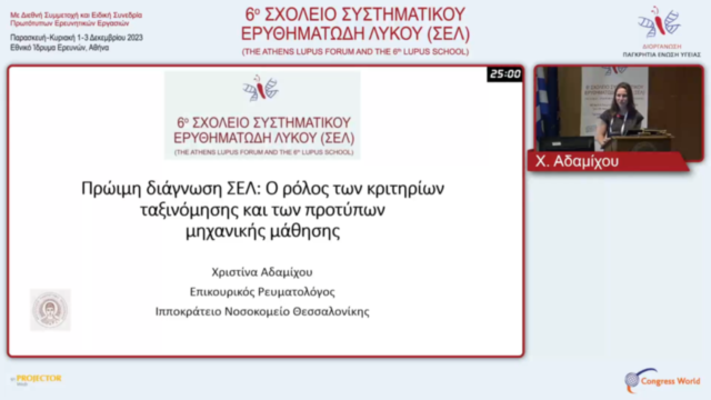 Πρώιμη διάγνωση ΣΕΛ: Ο ρόλος των κριτηρίων ταξινόμησης και των προτύπων μηχανικής μάθησης (Early diagnosis and the role of artificial learning) | Χ. Αδαμίχου
