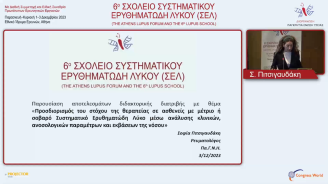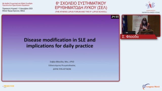 Τροποποίηση νόσου (disease modification) στον ΣΕΛ: Γενικές αρχές και κλινικές εφαρμογές (Disease modification in SLE and implications for daily prctice) | Σ. Φλούδα