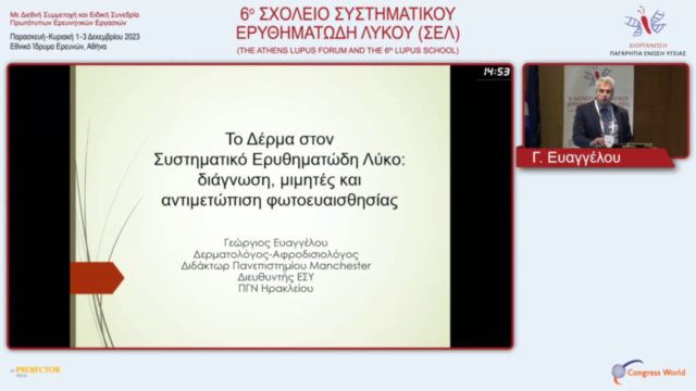 Το δέρμα στον ΣΕΛ: Διάγνωση, μιμητές και αντιμετώπιση φωτοευαισθησίας (The skin in SLE) | Γ. Ευαγγέλου