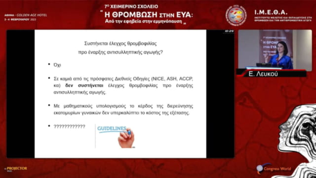 Αντιθρομβωτική αγωγή στην γυναίκα: Ιδιαιτερότητες, ενδείξεις, επιπλοκές | Ε. Λευκού