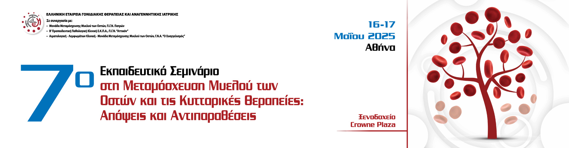 Μετά την έλευση 7 χρόνων από το πρώτο σεμινάριο, σας προσκαλούμε με μεγάλη μας χαρά στο 7o Εκπαιδευτικό Σεμινάριο στην Μεταμόσχευση Μυελού των Οστών.