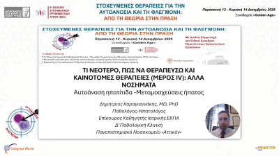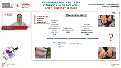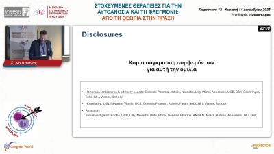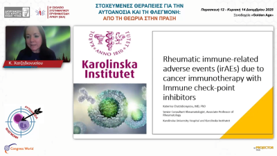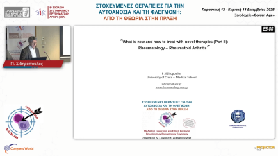 08.30–09.30 | ΤΙ ΝΕΟΤΕΡΟ, ΠΩΣ ΝΑ ΘΕΡΑΠΕΥΣΩ ΚΑΙ ΚΑΙΝΟΤΟΜΕΣ ΘΕΡΑΠΕΙΕΣ (ΜΕΡΟΣ IΙ): ΡΕΥΜΑΤΟΛΟΓΙΑ – ΦΛΕΓΜΟΝΩΔΕΙΣ ΑΡΘΡΙΤΙΔΕΣ
