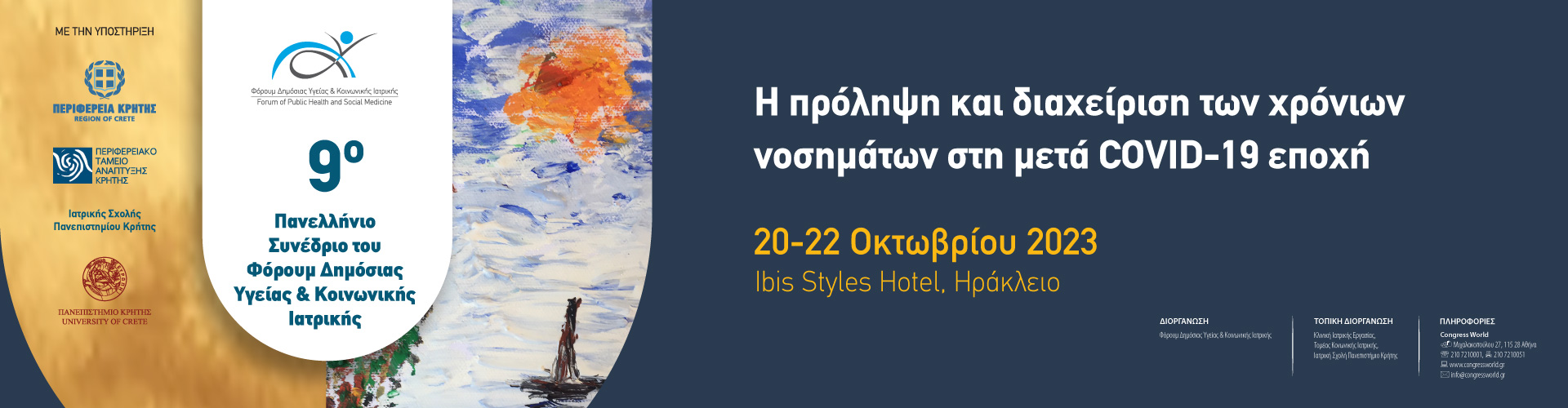 Φέτος, μετά από μακροχρόνια διακοπή λόγω πανδημίας, το Φόρουμ Δημόσιας Υγείας και Κοινωνικής Ιατρικής*, διοργανώνει και πάλι τη σπουδαιότερη επιστημονική του εκδήλωση, το Πανελλήνιο Συνέδριο του Φόρουμ Δημόσιας Υγείας και Κοινωνικής Ιατρικής. Πρόκειται για το 9ο Πανελλήνιο Συνέδριο του Φόρουμ που προγραμματίζεται να λάβει χώρα στο Ηράκλειο Κρήτης στις 20-22 Οκτωβρίου 2023 με κεντρικό θέμα: