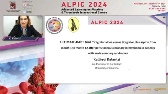 ULTIMATE-DAPT trial. Ticagrelor alone versus ticagrelor plus aspirin from month 1 to month 12 after percutaneous coronary intervention in patients with acute coronary syndromes Kalliroi Kalantzi