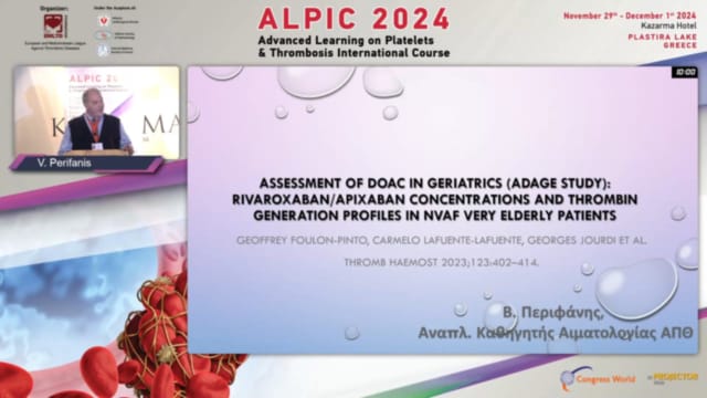 Adage Study. Assessment of DOAC in GEriatrics: Rivaroxaban/Apixaban Concentrations and Thrombin Generation Profiles in NVAF Very Elderly Patients Vasileios Perifanis