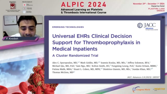 Universal EHRs clinical decision support for thromboprophylaxis in medical Inpatients. A Cluster Randomized Trial Firas Kreidieh