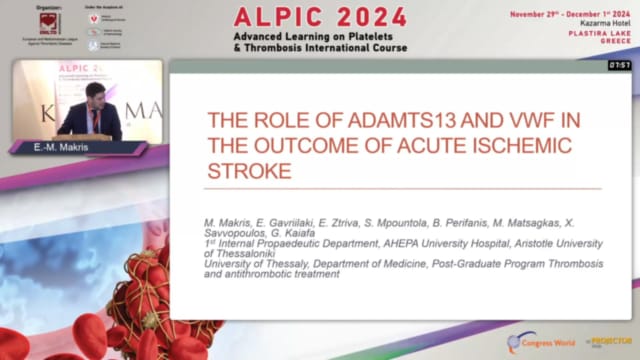 The role of VWF: ADAMTS13 ration in predicting the outcome of ischemic stroke Evangelos-Michail Makris