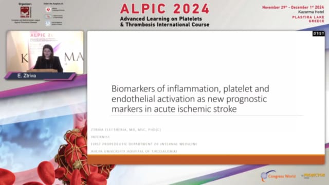 Biomarkers of inflammation, platelet and endothelial activation as new prognostic markers in acute ischemic strokes Eleftheria Ztriva