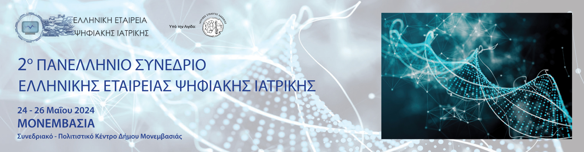 Το 2ο Πανελλήνιο Συνέδριο Ψηφιακών Εφαρμογών στην Ιατρική πραγματοποιείται στη Μονεμβασιά, στις 24–26 Μαΐου 2024. Πρόκειται για ένα σημαντικό επιστημονικό γεγονός που πραγματοποιείται στη χώρα μας με οργανώτρια εταιρεία την ΕΕΨΙ και τη συμμετοχή διαπρεπών επιστημόνων του εσωτερικού και του εξωτερικού.