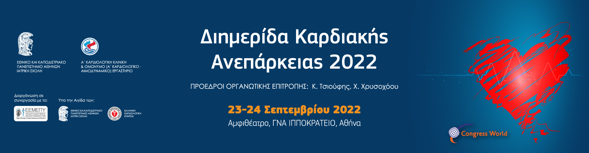 Με ιδιαίτερη χαρά σας προσκαλούμε να συμμετάσχετε στη Διημερίδα για την Καρδιακή Ανεπάρκεια που διοργανώνεται από την Α΄ Πανεπιστημιακή Καρδιολογική Κλινική του Ιπποκράτειου Γενικού Νοσοκομείου Αθηνών στις 23 και 24 Σεπτεμβρίου 2022.