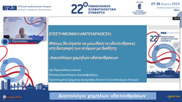 13.00-14.00 | Αίθουσα Ιλισσός | Επιστημονική αντιπαράθεση Μήπως θα έπρεπε να μειωθούν οι υδατάνθρακες στη διατροφή των ατόμων με διαβήτη;