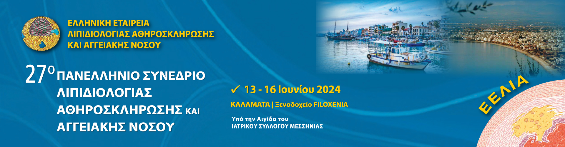 Με ιδιαίτερη χαρά σας προσκαλώ, εκ μέρους του Διοικητικού Συμβουλίου, να παρακολουθήσετε το 27ο Πανελλήνιο Συνέδριο της Ελληνικής Εταιρείας Λιπιδιολογίας, Αθηροσκλήρωσης και Αγγειακής Νόσου, το οποίο οργανώνεται υβριδικά στις 13-16 Ιουνίου 2024 στην Καλαμάτα.