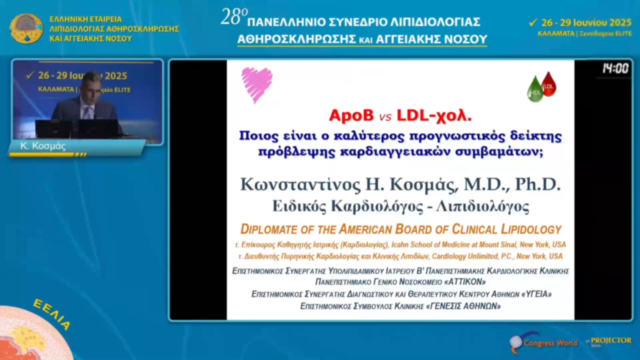 ApoB vs LDL-χολ. Ποιος είναι ο καλύτερος προγνωστικός δείκτης πρόβλεψης καρδιαγγειακών συμβαμάτων; | Κ. Κοσμάς