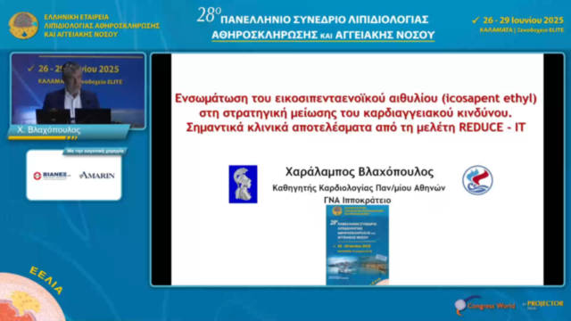 Eνσωμάτωση του εικοσιπενταενοϊκού αιθυλίου (icosapent ethyl) στη στρατηγική μείωσης του καρδιαγγειακού κινδύνου. Σημαντικά κλινικά αποτελέσματα από τη μελέτη RΕDUCE - IT | Χ. Βλαχόπουλος