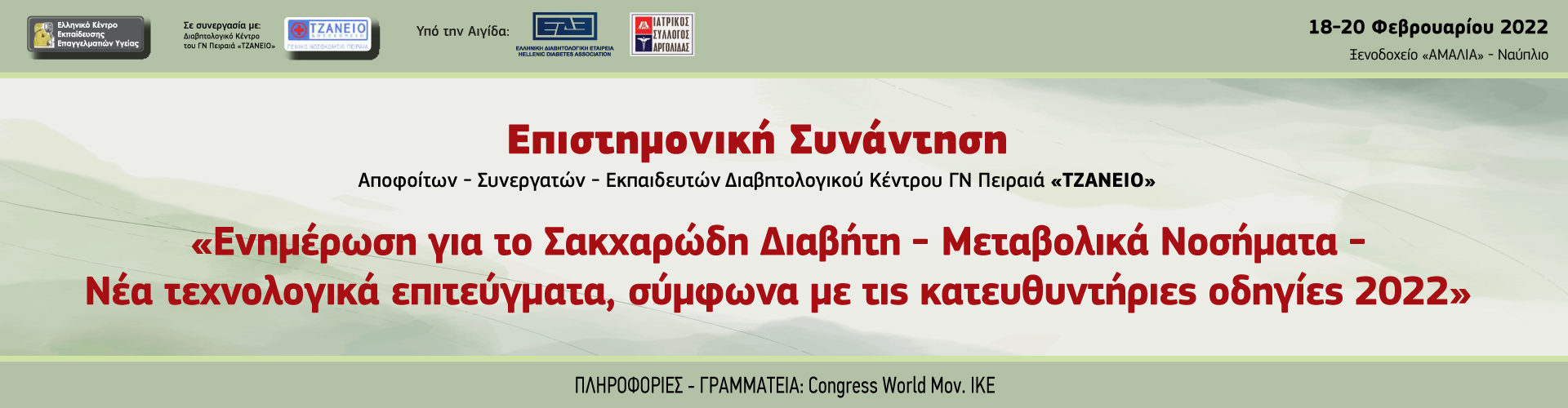 Στην προσπαθειά όπως συνεχιστεί η παράδοση των τακτικών συναντήσεων των αποφοίτων του ΓΝ Πειραιά «ΤΖΑΝΕΙΟ» και κάτω από ιδιαίτερα δύσκολες συνθήκες διοργανώνουμε την καθιερωμένη επιστημονική συνάντηση των αποφοίτων, συνεργατών, εκπαιδευτών του Διαβητολογικού Κέντρου του ΓΝ Πειραιά «ΤΖΑΝΕΙΟ».