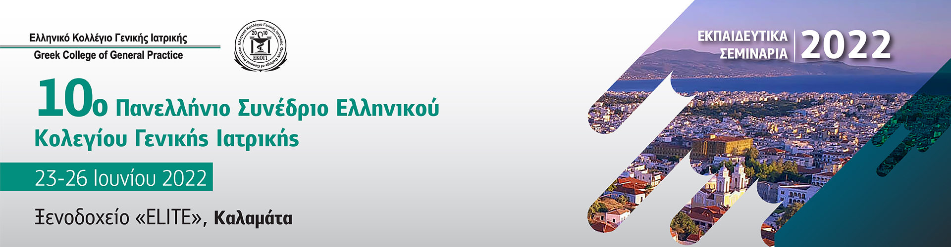 Το ΔΣ του Ελληνικού Κολλεγίου Γενικής Ιατρικής (ΕΚΟΓΙ) σας καλωσορίζει στο 10ο Πανελλήνιο Συνέδριό του που πραγματοποιείται στην Καλαμάτα από 23 έως 26 Ιουνίου 2022.