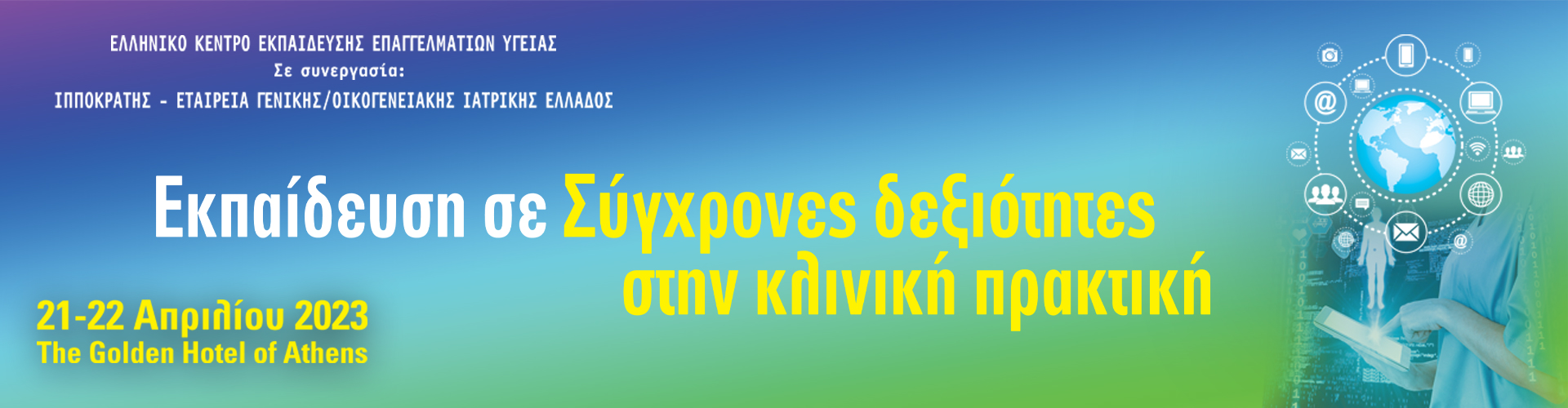 Με αυτές τις σκέψεις, το Ελληνικό Κέντρο Εκπαίδευσης Επαγγελματιών Υγείας σε συνεργασία με τον ΙΠΠΟΚΡΑΤΗ – Εταιρεία Γενικής/Οικογενειακής Ιατρικής Ελλάδος σχεδίασαν και πραγματοποιούν το σεμινάριο «Εκπαίδευση στις Σύγχρονες δεξιότητες στην κλινική πράξη» 21 και 22 Απριλίου 2023, στην Αθήνα, στο ξενοδοχείο Golden Age.