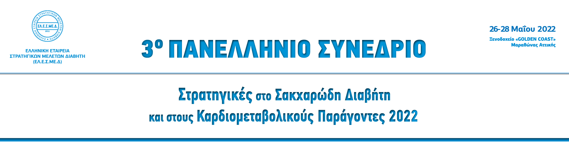 Η καταγραφή των διάφορων παθογενετικών και παθοφυσιολογικών μηχανισμών στον σακχαρώδη διαβήτη, των διάφορων συννοσηροτήτων και των τελευταίων δεδομένων στη θεραπευτική αντιμετώπιση, αποτελούν τα θέματα του 3ου Πανελλήνιου Συνεδρίου με θέμα: «Στρατηγικές στο Σακχαρώδη και στους Καρδιομεταβολικούς Παράγοντες 2022», το οποίο θα πραγματοποιηθεί από 26-28 Μαΐου 2022, στο Μαραθώνα Αττικής στο ξενοδοχείο “Golden Coast”. Το Συνέδριο το διοργανώνει η Ελληνική Εταιρεία Στρατηγικών Μελετών Διαβήτη (ΕΛΕΣΜΕΔ) και αποτελεί συνέχεια των Συνεδρίων που ξεκίνησαν ανά διετία το 1996.