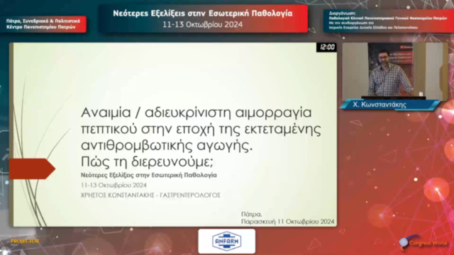 Αναιμία η/και αδιευκρίνιστη αιμορραγία πεπτικού στην εποχή της εκτεταμένης αντιθρομβωτικής αγωγής. Πώς τη διερευνούμε; | Χ. Κωνσταντάκης