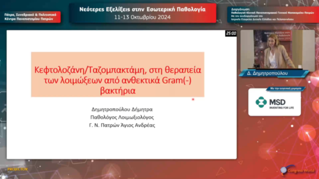 Κεφτολοζάνη/Ταζομπακτάμη, στη θεραπεία των λοιμώξεων από ανθεκτικά Gram (-) βακτήρια | Δ. Δημητροπούλου
