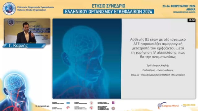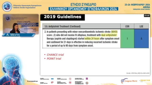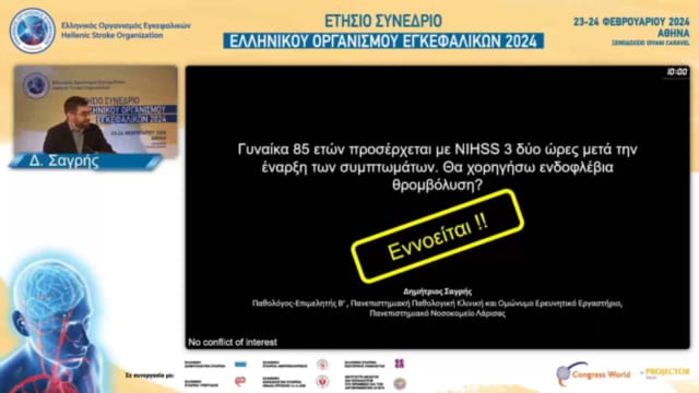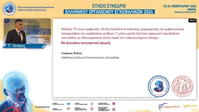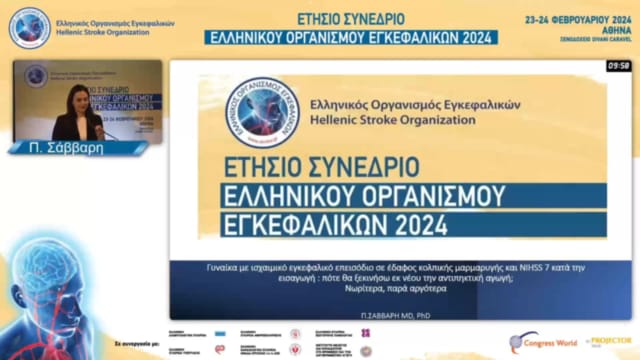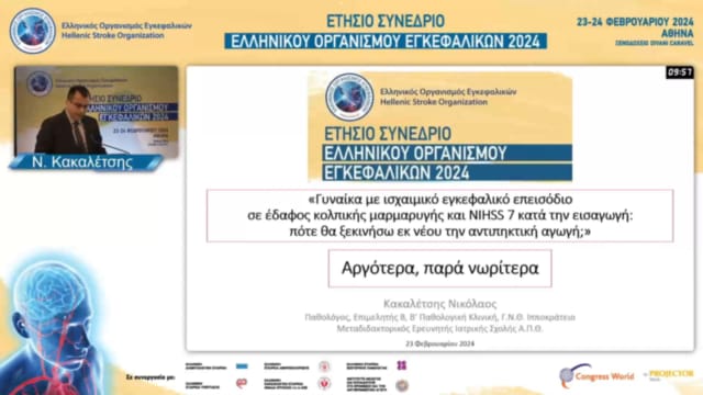 17.00-17.30 DABATE: ΓΥΝΑΙΚΑ ΜΕ ΙΣΧΑΙΜΙΚΟ ΕΓΚΕΦΑΛΙΚΟ ΕΠΕΙΣΟΔΙΟ ΣΕ ΕΔΑΦΟΣ ΚΟΛΠΙΚΗΣ ΜΑΡΜΑΡΥΓΗΣ ΚΑΙ NIHSS 7 ΚΑΤΆ ΤΗΝ ΕΙΣΑΓΩΓΗ: ΠΟΤΕ ΘΑ ΞΕΚΙΝΗΣΩ ΕΚ ΝΕΟΥ ΤΗΝ ΑΝΤΙΠΗΚΤΙΚΗ ΑΓΩΓΗ;