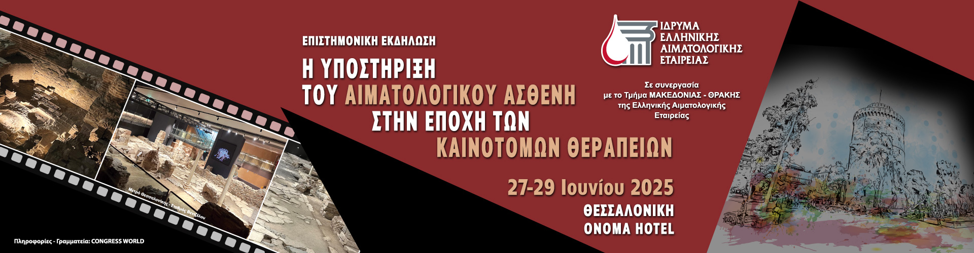 Το συνέδριο φέτος φιλοξενείται στη Θεσσαλονίκη, έδρα τόσο του Ιδρύματος όσο και του Τμήματος Μακεδονίας-Θράκης της ΕΑΕ, και θα πραγματοποιηθεί στις 27-29 Ιουνίου 2025. Η εναρκτήρια ομιλία είναι αφιερωμένη στην ιστορία και την τέχνη της πόλης της Θεσσαλονίκης και θα δοθεί από την κα Ευτέρπη Μαρκή, Επίτιμο Έφορο Βυζαντινών Αρχαιοτήτων, ενώ φέτος την εκδήλωσή μας θα τιμήσει και εκπρόσωπος του Παγκόσμιου Οργανισμού Υγείας. Τέλος, σε συνέχεια της περσινής μας προσπάθειας και υπηρετώντας με συνέπεια τους σκοπούς του Ιδρύματος, που είναι η υποστήριξη και ανάδειξη των νέων αιματολόγων, δίνεται το βήμα σε νεότερους συναδέλφους με μεγάλη κλινική εμπειρία, να καταθέσουν την άποψή τους, παρουσιάζοντας τις ραγδαίες εξελίξεις στην Αιματολογία.