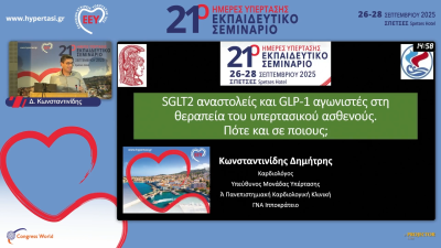 SGLT2 αναστολείς και GLP-1 αγωνιστές στη θεραπεία του υπερτασικού ασθενούς. Πότε και σε ποιους; | Δ. Κωνσταντινίδης