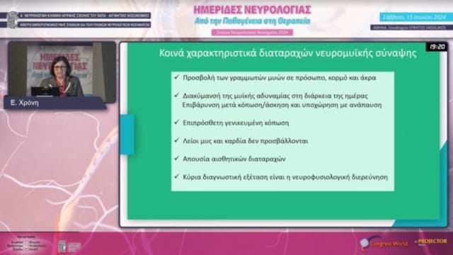 Κλινική εικόνα παθήσεων της νευρομυϊκής σύναψης. Πότε τις υποψιαζόμαστε; Ποιοί είναι οι υπότυποι της νόσου; | Ε. Χρόνη