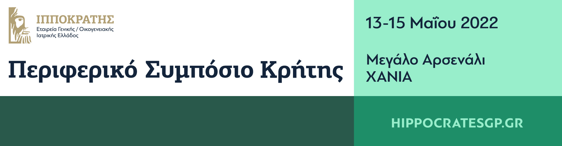 Ο ‘‘ΙΠΠΟΚΡΑΤΗΣ’’ ακολουθώντας πιστά το πρόγραμμα της Συνεχιζόμενης Ιατρικής Εκπαίδευσης (CME) των Γ/ΟΙ για το 2022, διοργανώνει το ‘‘Περιφερικό Συμπόσιο Κρήτης - Ιπποκράτειες Ημέρες Π.Φ.Υ ’’ στις 13-15/05/2022 στο Μεγάλο Αρσενάλι Χανίων.