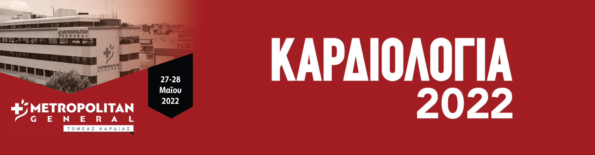 Ο Τομέας Καρδιάς του METROPOLITAN GENERAL σε συνεργασία με την Ελληνική Εταιρεία Μελέτης Εφαρμογών Πληροφορικής Υγείας σας καλωσορίζουν στο Συνέδριο «ΚΑΡΔΙΟΛΟΓΙΑ 2022» που πραγματοποιείται διαδικτυακά, στις 27 και 28 Μαίου 2022. Το Συνέδριο «ΚΑΡΔΙΟΛΟΓΙΑ 2022» είναι μια προσπάθεια περαιτέρω συνεργασίας και ανταλλαγής γνώσεων μεταξύ της ΚΑΡΔΙΟΛΟΓΙΑΣ, ΚΑΡΔΙΟΧΕΙΡΟΥΡΓΙΚΗΣ, ΚΑΡΔΙΟΟΓΚΟΛΟΓΙΑΣ, ΗΛΕΚΤΡΟΦΥΣΙΟΛΟΓΙΑΣ, καθώς και άλλων Ειδικοτήτων.