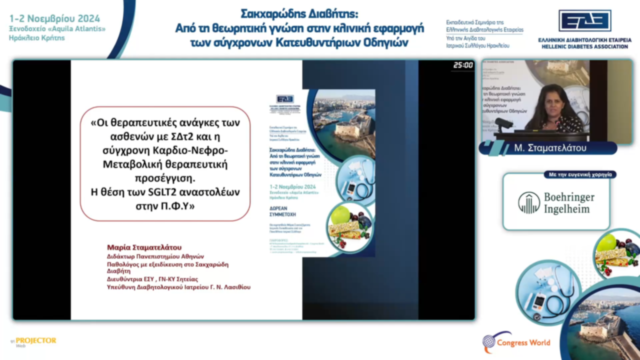 Οι θεραπευτικές ανάγκες των ασθενών με ΣΔτ2 και η σύγχρονη Κάρδιο-Νέφρο-Μεταβολική θεραπευτική προσέγγιση: Η θέση των SGLT-2 αναστολέων στην Π.Φ.Υ. | Μ. Σταματελάτου